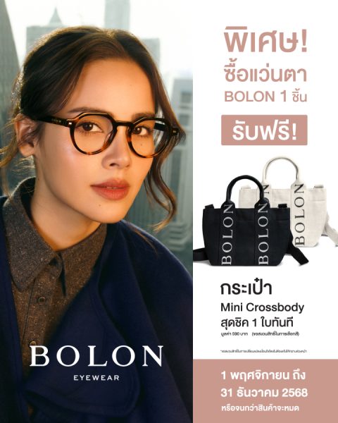 BOLON Fall/Winter 25 Collection ในแคมเปญ Beyond The Horizon มาพร้อมโปรโมชั่นพิเศษ: ซื้อแว่นตา BOLON 1 ชิ้น (ทั้งแว่นสายตาหรือแว่นกันแดด) รับฟรีกระเป๋า Cross Body Bag 1 ใบ ตั้งแต่วันนี้ถึง 31 ธันวาคม 2568 หรือจนกว่าสินค้าจะหมด ติดตามความเคลื่อนไหวของ BOLON ได้ทาง Website: https://th.boloneyewear.com